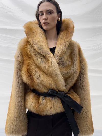 Коротка шуба Kulakovsky з овчини тоскана – з м’якою пластичною текстурою та лаконічною довжиною. Прямий крій, регульоване шалеве декольте та знімний пояс дозволяють гру з силуетом. Колір досягається методом градієнтного ручного фарбування, що робить кожен екземпляр унікальним.